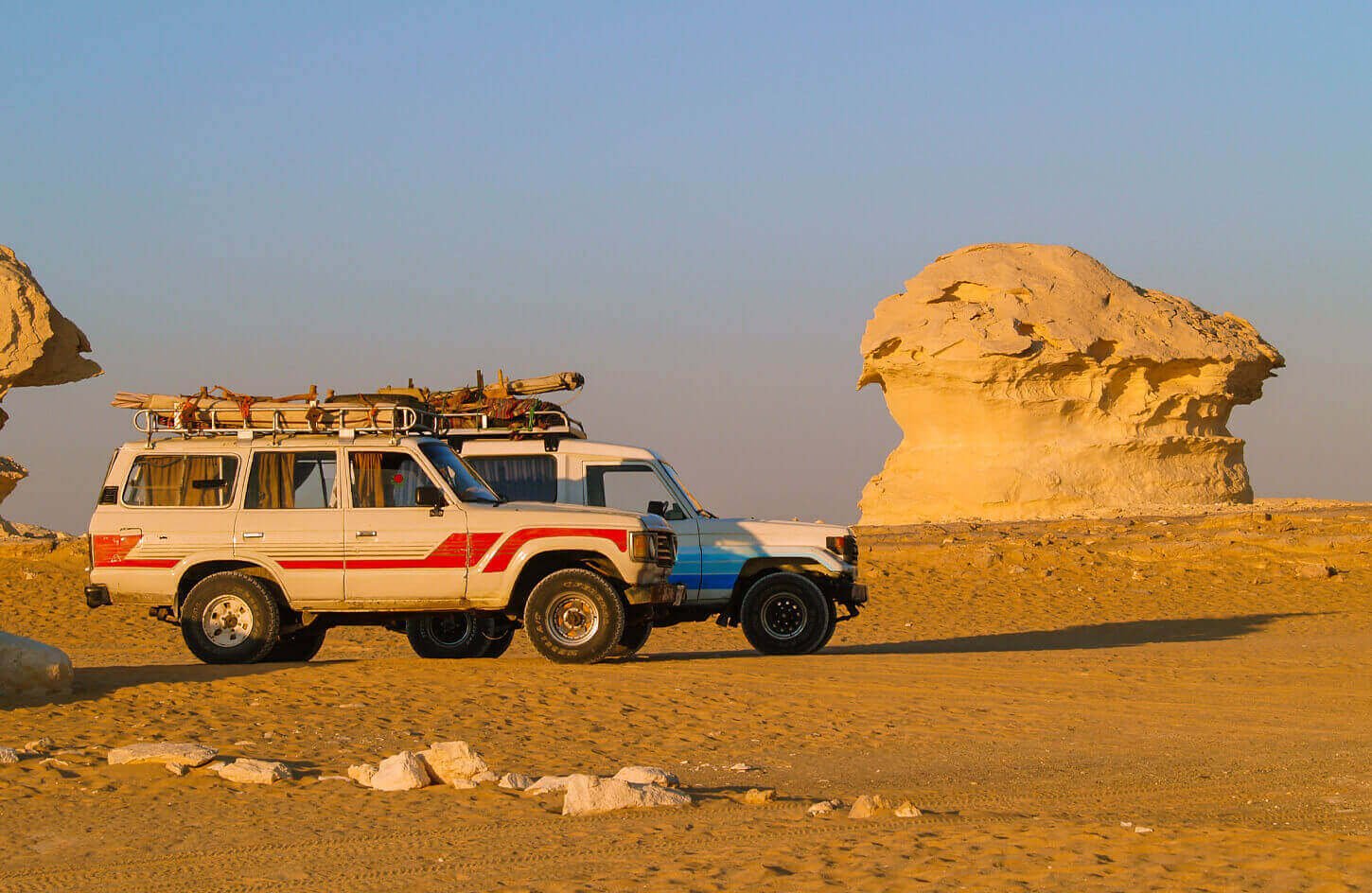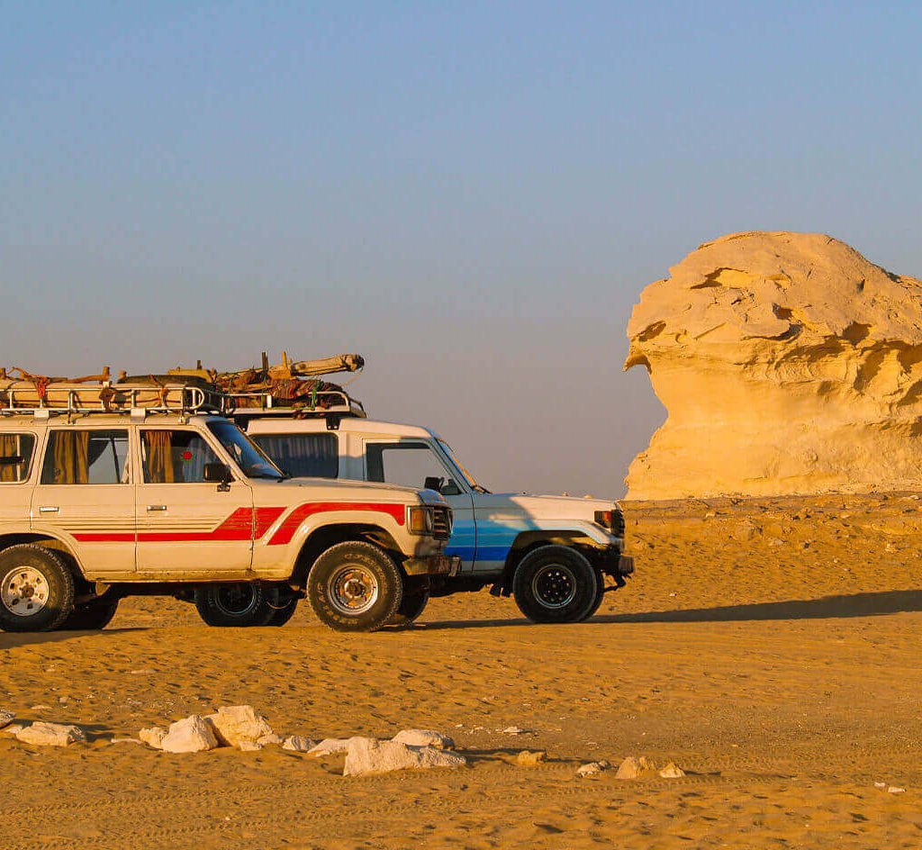 Réveillez-vous dans l’air frais du désert et savourez un petit-déjeuner copieux, parfait pour faire le plein d’énergie avant une journée passionnante d’exploration. Montez à bord d’un robuste 4×4 Land Cruiser, prêt à parcourir les différents terrains du désert égyptien, allant des routes lisses aux pistes sauvages et escarpées.