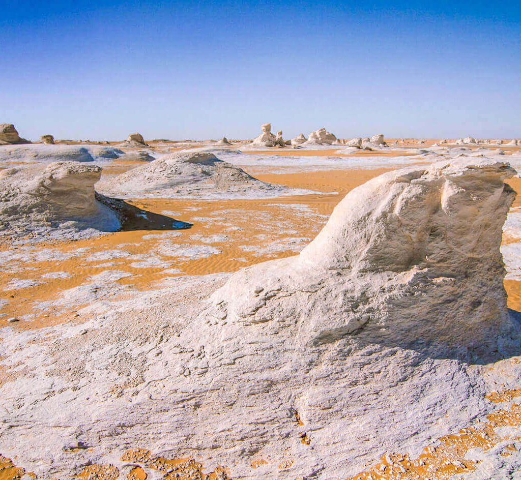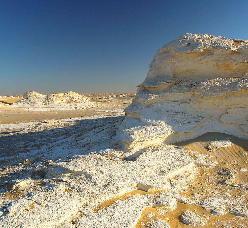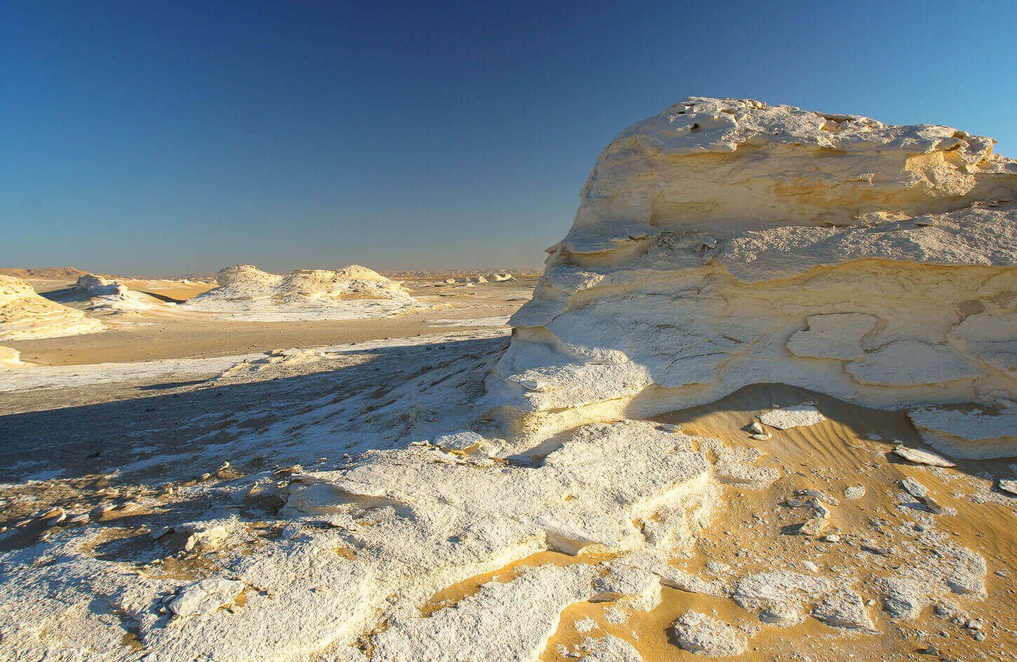 Ensuite, partez à la découverte du Désert Blanc, un lieu vraiment hors du commun, célèbre pour ses formations calcaires blanches. Au fil des millénaires, le vent et le temps ont sculpté ces roches en formes étranges et magnifiques, ressemblant à des champignons, des icebergs ou des sculptures abstraites.