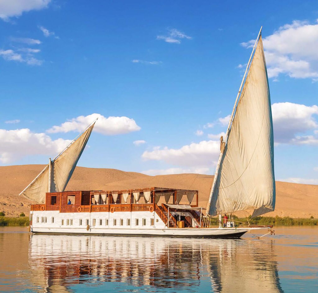 À bord, vous bénéficiez d’un service exceptionnel, avec des repas raffinés, des cabines luxueuses, et une atmosphère paisible, idéale pour se détendre après une journée d’exploration. Cette croisière est bien plus qu’un simple voyage : c’est une occasion de se connecter avec l’histoire et la beauté naturelle de l’Égypte tout en profitant du confort d’un bateau traditionnel. Laissez-vous emporter par la magie du Nil et embarquez pour une aventure inoubliable à bord de votre Dahabiya.