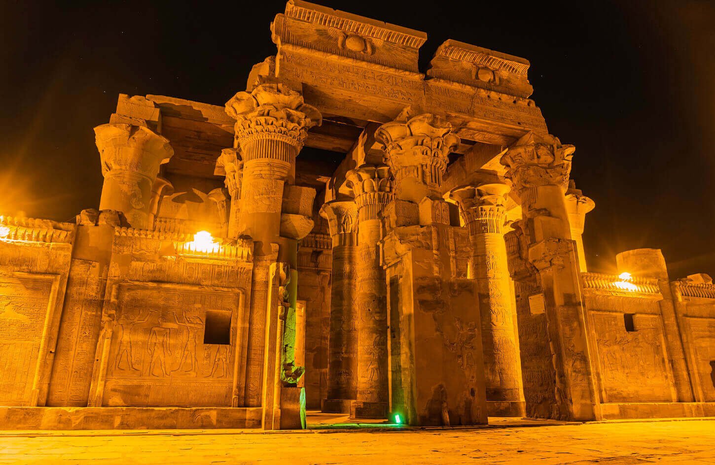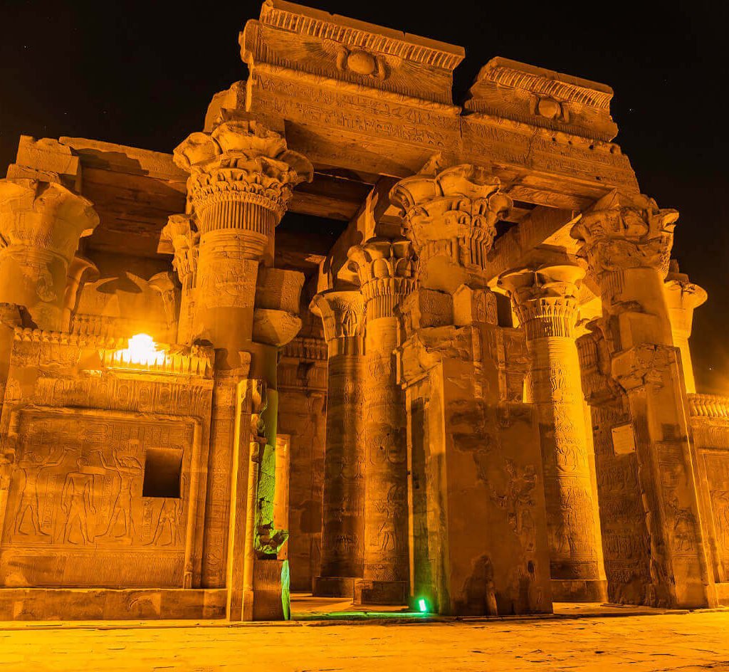 Le merveilleux Temple de Kom Ombo est divisé en 2 temples avec 2 entrées, 2 halls hypostyles et 2 sanctuaires, de manière majestueuse et unique, car il est connu comme la construction architecturale la plus rare. Il a été construit entre 180 av. J.-C. et 47 av. J.-C. pour honorer Haroeris, “Horus l’Aîné”, et Sobek, le dieu crocodile du Nil.