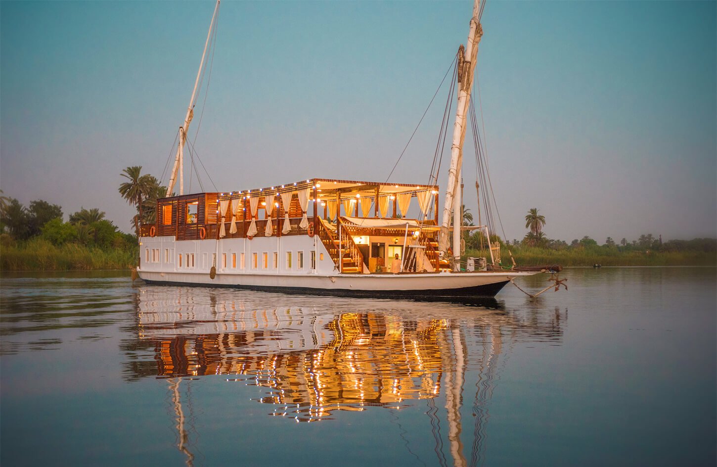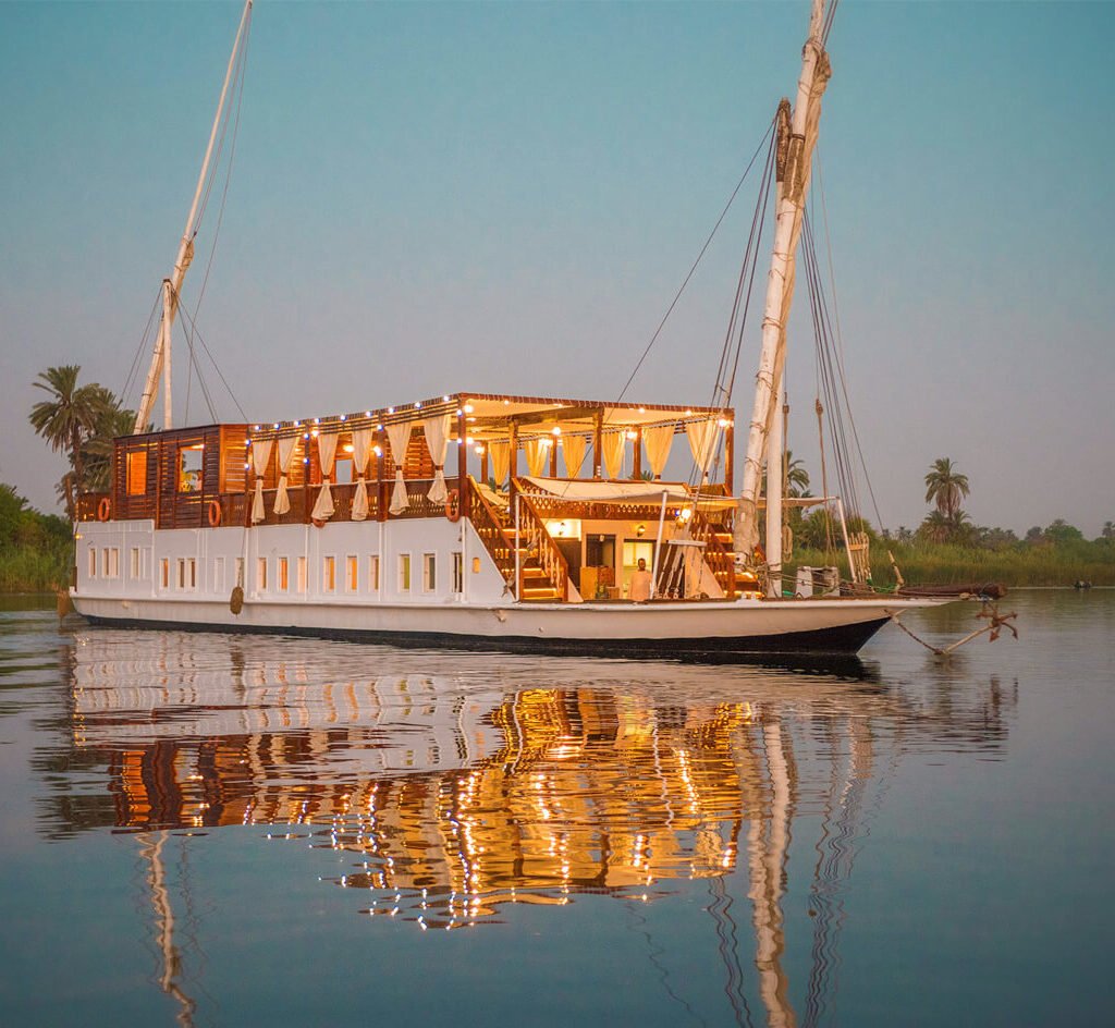 Pour ceux qui souhaitent explorer l’Égypte de manière authentique et raffinée, une croisière en Dahabiya de 8 jours au départ de Louxor est l’expérience idéale. À bord de ce bateau traditionnel à voile, vous naviguerez tranquillement sur les eaux légendaires du Nil, tout en découvrant les trésors historiques et culturels que l’Égypte a à offrir. Ce voyage unique vous permettra de plonger dans l’histoire millénaire de l’Égypte tout en profitant du confort et du luxe d’une croisière intime.