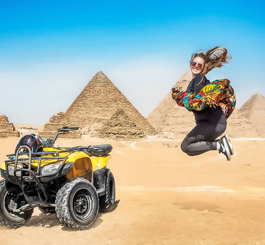 Préparez-vous à vivre une expérience unique et passionnante avec le safari en quad des pyramides ! Votre aventure commence par une prise en charge pratique à l’hôtel, où notre équipe vous escortera dans un véhicule confortable et climatisé jusqu’aux pyramides de Gizeh. À votre arrivée, vous serez initié aux rudiments du quad, et vous vous préparerez à un voyage plein d’adrénaline à travers le désert.
