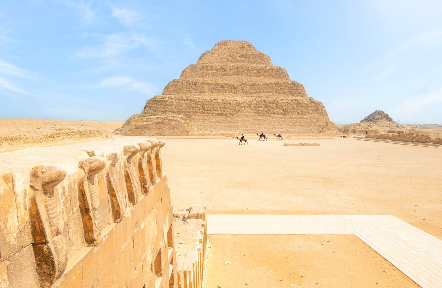 Après un déjeuner savoureux dans un restaurant local, poursuivez vers Saqqarah pour voir la pyramide à degrés de Djéser, la plus ancienne structure en pierre du monde. Terminez la journée à Memphis, l’ancienne capitale de l’Égypte, où vous découvrirez la statue colossale de Ramsès II et d’autres ruines fascinantes. Retournez à votre hôtel au Caire pour vous reposer et réfléchir aux merveilles de la journée.