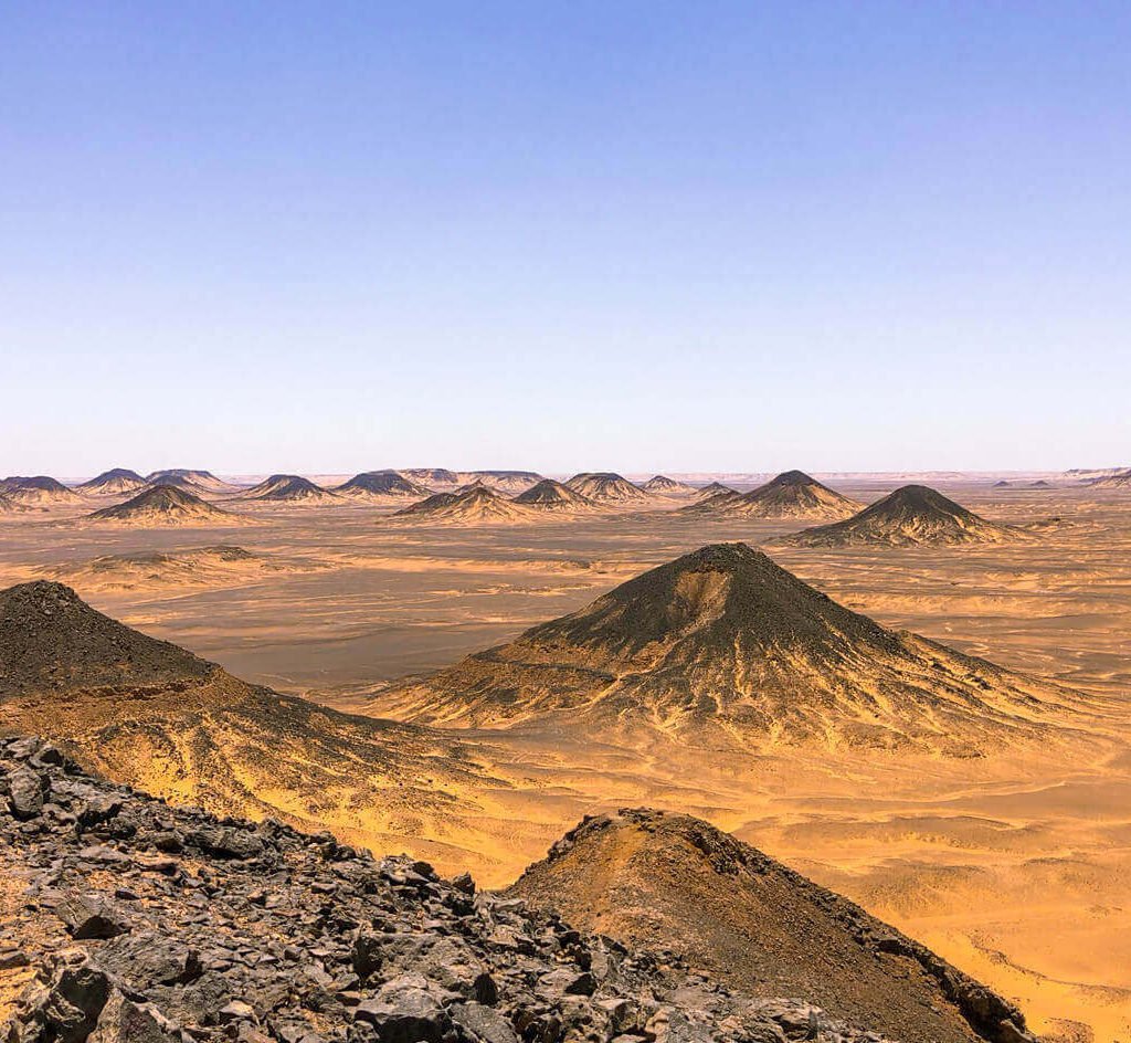 Pour admirer une vue panoramique sur l’oasis, grimpez sur la Montagne Noire. Après une courte ascension, vous serez récompensé par un superbe panorama sur l’Oasis de Bahariya et le désert environnant, mettant en valeur le contraste saisissant entre la verdure et les étendues arides.