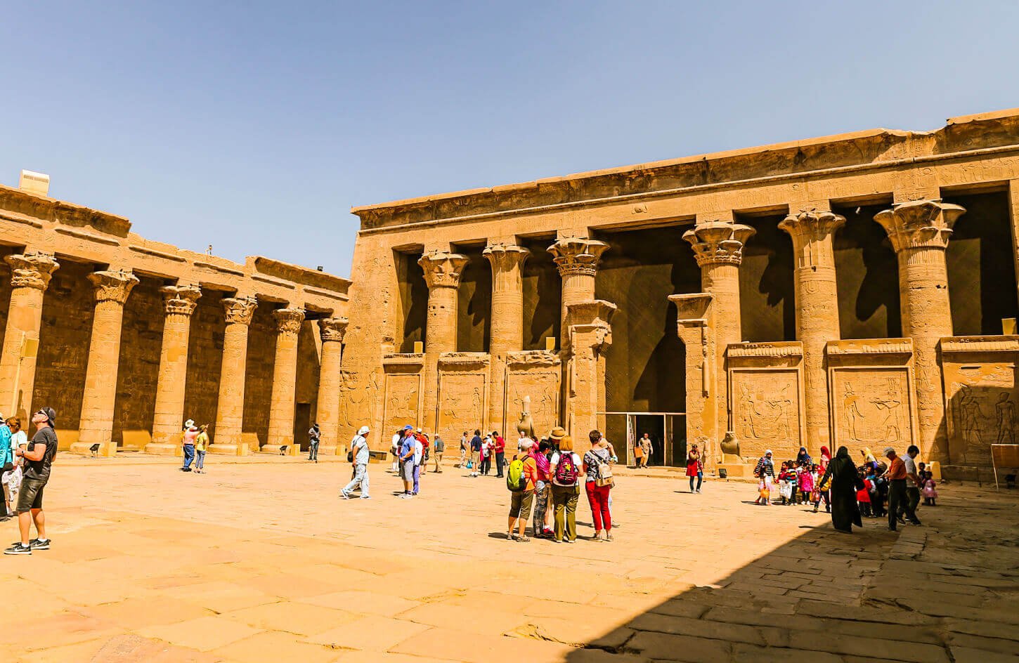 Après le petit-déjeuner à bord, débarquez pour visiter le temple d’Edfou, l’un des temples les mieux préservés d’Égypte, dédié au dieu faucon Horus. Admirez ses murs monumentaux et ses magnifiques bas-reliefs représentant mythes et batailles antiques.