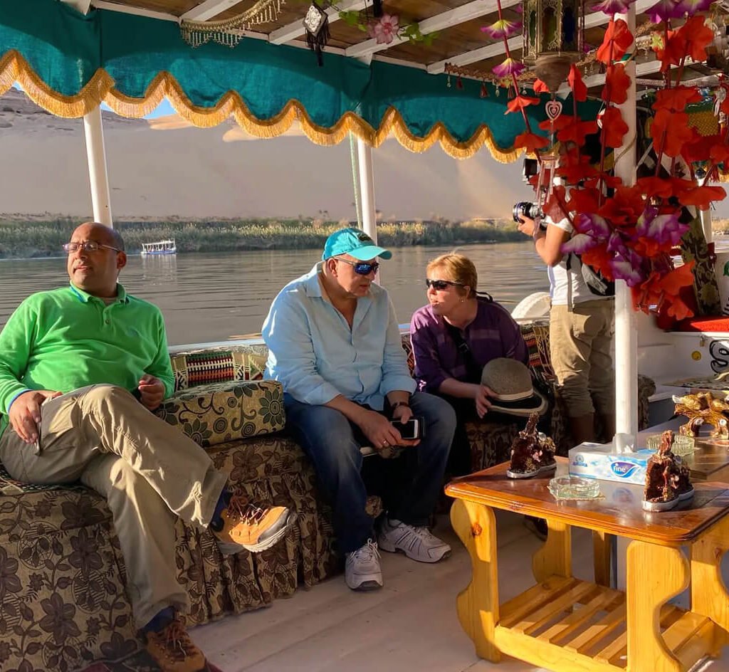 Après ces incroyables visites historiques, profitez d’un délicieux déjeuner égyptien traditionnel dans un restaurant local d’Assouan, où vous pourrez savourer les saveurs de la cuisine locale. Dans l’après-midi, vous prendrez une p