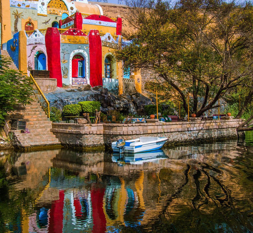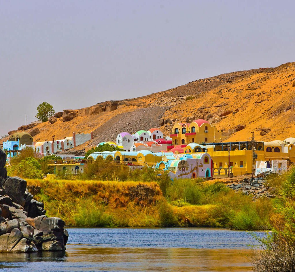 Votre voyage commence par une promenade pittoresque en bateau le long du Nil, en passant par des rives luxuriantes, des dunes de sable doré et des petites îles avant d’arriver à un village nubien traditionnel. En débarquant, vous serez accueilli par la chaleureuse hospitalité du peuple nubien, connu pour sa riche culture, ses maisons vibrantes peintes de couleurs vives et son lien profond avec le Nil.